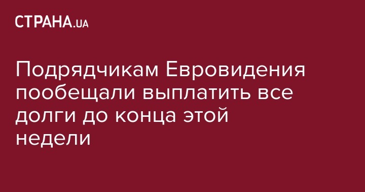 Организаторы пообещали подрядчикам Евровидения выплатить все долги за работу над вокальным шоу в Киеве уже до конца этой недели. Об этом "Стране" стало известно из собственных источников.