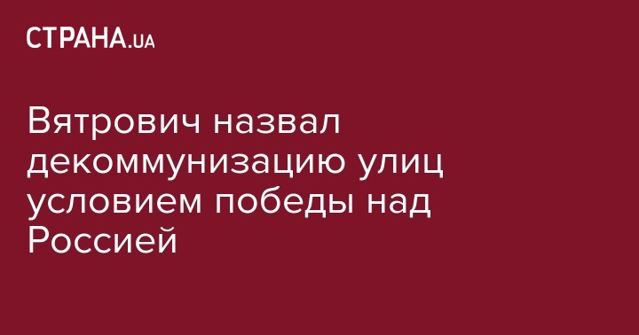 Глава украинского Института национальной памяти Владимир Вятрович заявил, что переименованием улиц и городов Украина лишает Россию базы для антиукраинских действий. Об этом он сказал в интервью "Апострофу".