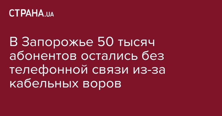 В Запорожье сегодня ночью вырезали и украли несколько отрезков медного кабеля крупнейшего оператора связи "Укртелеком". В результате около 50 тыс. абонентов остались без связи. Об этом в Facebook написал директор по корпоративным коммуникациям компании Михаил Шуранов.