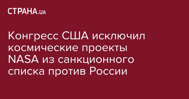 Сегодня Конгресс США принял поправку к законопроекту о расширении санкций против России, которая делает исключение для сотрудничества в космической отрасли для Национального агентства по аэронавтике и исследованию космического пространства (NASA). Об этом сообщает "Укринформ".