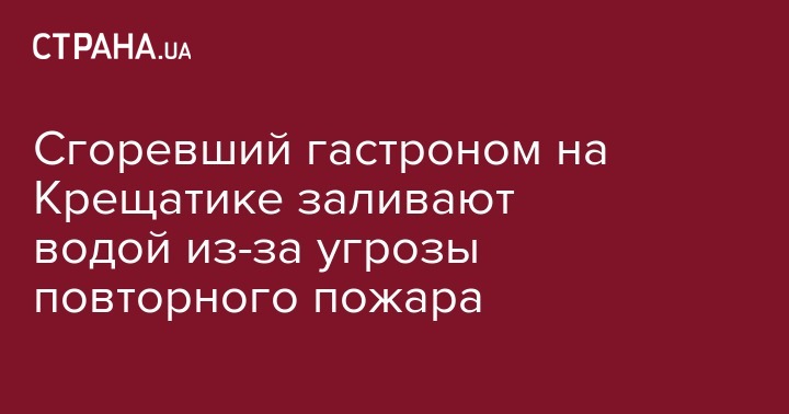 На Крещатике в Киеве сегодня утром продолжали поливать деревянные конструкции в сгоревшем вчера здании бывшего Центрального гастронома из-за угрозы повторного пожара. Об этом сообщает "112 Украина".