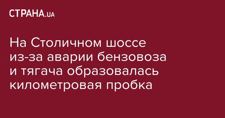 На Столичном шоссе из-за аварии бензовоза и тягача образовалась километровая пробка