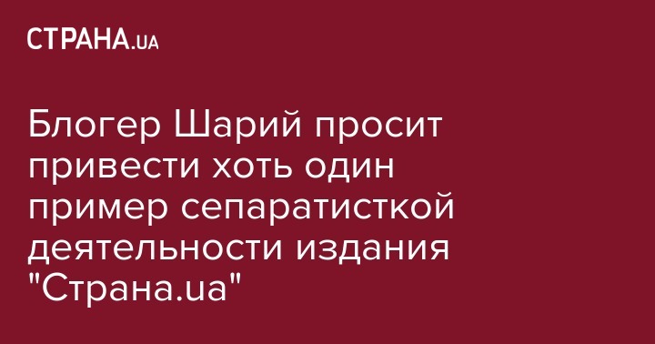 Блогер Шарий просит привести хоть один пример сепаратисткой деятельности издания "Страна.ua"