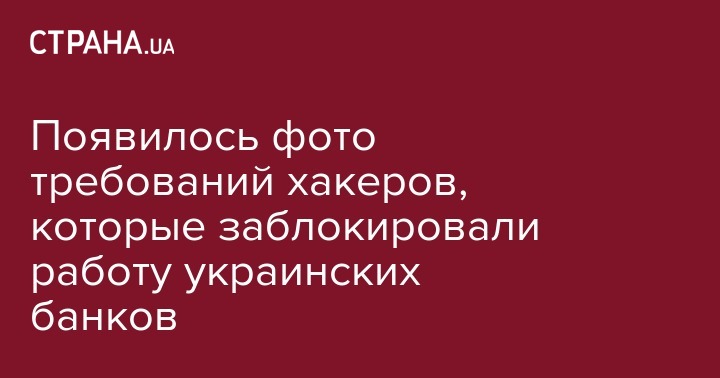Во вторник, 27 июня, вирус-вымогатель, похожий на WannaCry атаковал украинские банки и другие учреждения. Появилось фото требований хакеров, которые заблокировали работу. Об этом сообщает  "Громадське".
