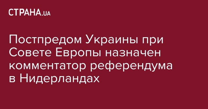 Постпредом Украины при Совете Европы назначен комментатор референдума в Нидерландах