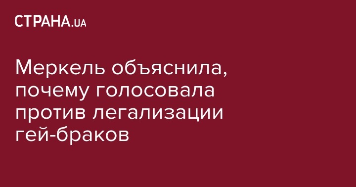 Канцлер Германии Ангела Меркель заявила, что голосовала против закона о легализации однополых браков. Об этом пишет РИА Новости.