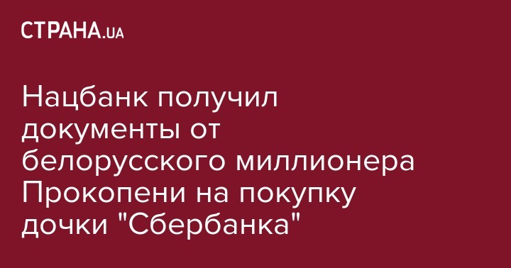 Нацбанк получил документы от белорусского миллионера Прокопени на покупку дочки "Сбербанка"