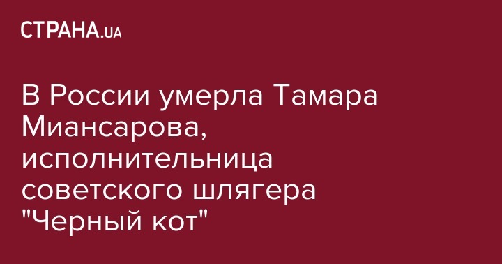 Вчера, 12 июля, поздно вечером в России скончалась советская и российская певица украинского происхождения, заслуженная артистка Украинской ССР, исполнительница популярного советского хита "Черный кот" Тамара Миансарова.