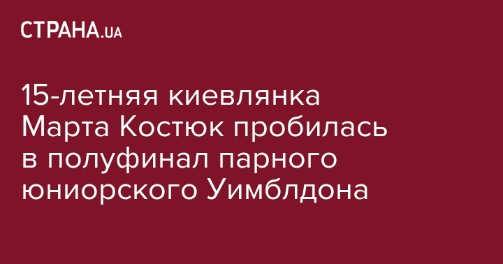 В пятницу, 14 июля 15-летняя теннисистка из Киева Марта Костюк вместе со своей напарницей - 17-летней канадкой Керсон Брэнстин пробилась в полуфинал парных соревнований юниорского Уимблдона-2017. Об этом сообщает Укринформ.