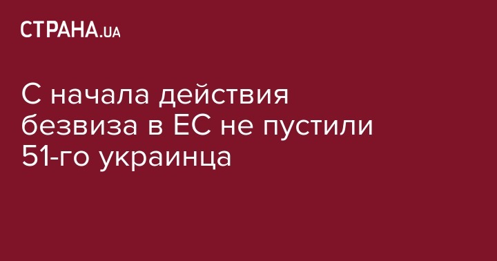 51 гражданину Украины отказали в пересечении границы с начала действия безвизового режима с Европейским Союзом. Об этом на пресс-конференции сообщил спикер Государственной пограничной службы Олег Слободян, передает "Украинская правда".