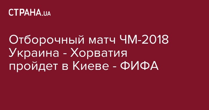 В ФИФА определились с местом проведения отборочного матча группового турнира ЧМ-2018 между сборными Украины и Хорватии. Об этом сообщает портал iSport.ua.