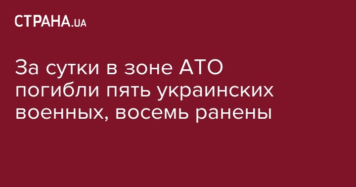 За прошедшие сутки в зоне проведения АТО на Донбассе погибли пять украинских военных и восемь ранены. Об этом сообщает пресс-центра штаба АТО в Facebook.
