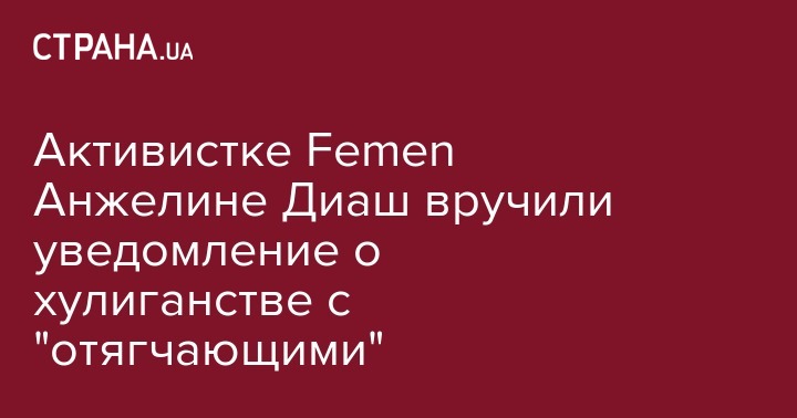 Около 23:50 пятницы, 21 июля активистке Femen Анжелине Диаш вручили уведомление о подозрении в совершении преступления. Об этом сообщает корреспондент "Страны".