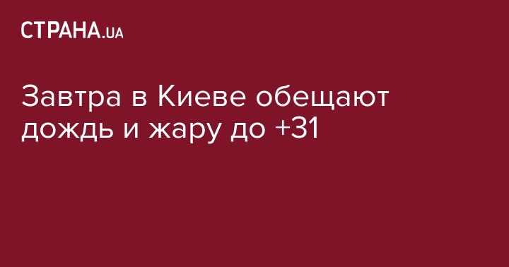 В среду, 26 июля, в Киеве обещают переменную облачность, ночью - без осадков, днем - местами кратковременный дождь, ветер южный, 5-10 м/с. Температура воздуха ночью до +20 градусов, днем до +31 градуса. Об этом сообщает Укргидрометцентр.