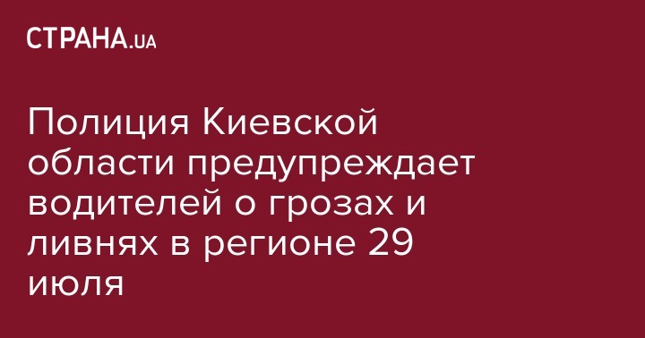 Полиция предупреждает водителей о грозах и сильных дождях завтра, 29 июля, в Киевской области. Об этом сообщили в Управлении превентивной деятельности полиции.