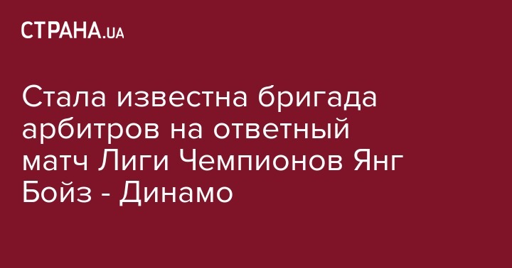 Стала известна бригада арбитров на ответный матч Лиги Чемпионов Янг Бойз - Динамо