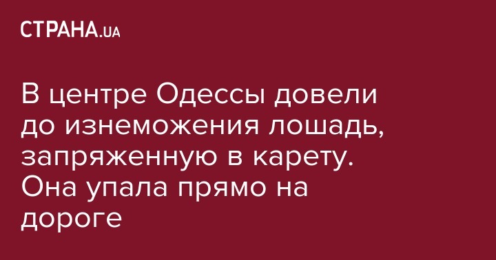 На улице Греческой в Одессе произошло ДТП. Без сил рухнула лошадь, запряженная в туристическую "карету".