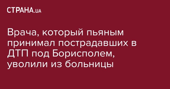 Врача, который пьяным принимал пострадавших в ДТП под Борисполем, уволили из больницы