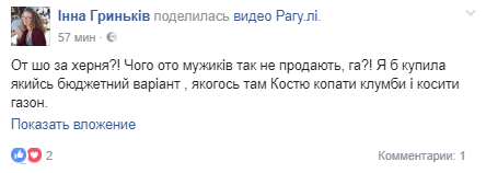 "Чего вот мужиков так не продают, а?! Я бы купила какой-то бюджетный вариант, какого-то Кости копать клумбы и косить газон", - поделилась Инна Гринькив.