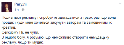 "Посмотрите рекламу и попробуйте догадаться с трех раз, что она продает и куда мне хочется засунуть авторам и заказчикам их креатив. Сексизм? Нет, не слышали. С другой стороны, я понимаю, что невозможно создать немудацкую рекламу, если ты мудак", - говорится в комментарии проекта к видео.
