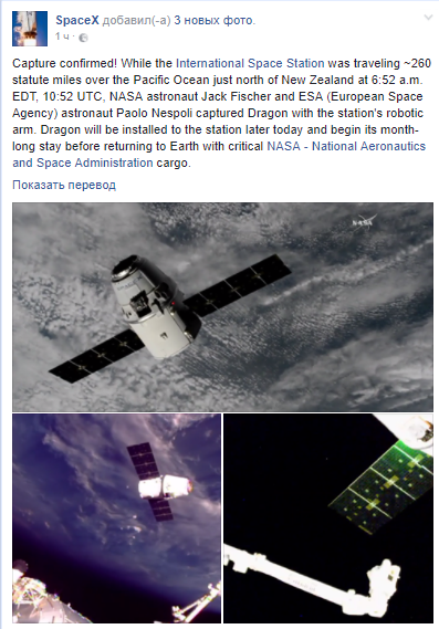 Ранее "Страна" писала о том, как Dragon доставит на МКС более 2,7 тонн груза, в том числе оборудование для 250 научных экспериментов.