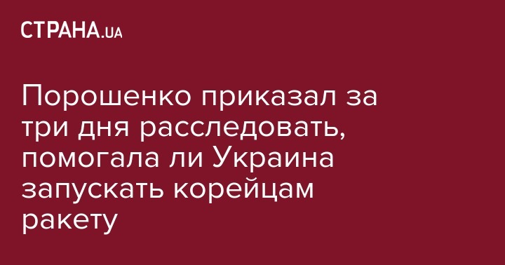 Президент Украины Петр Порошенко поручил расследовать информацию, опубликованную в The New York Times, о поставках из Украины в КНДР ракетных двигателей.