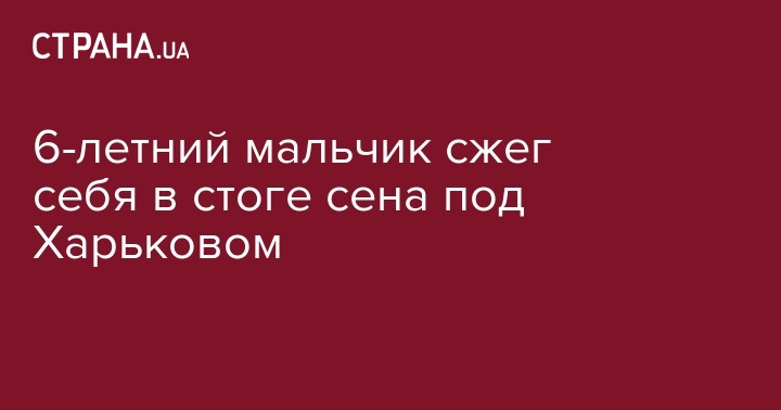 В поселке Калиновое Золочевского района Харьковской области произошла трагедия - 6-летний мальчик поджег себя в стоге сена. Об этом сообщает пресс-служба Нацполиции в Харьковской области.