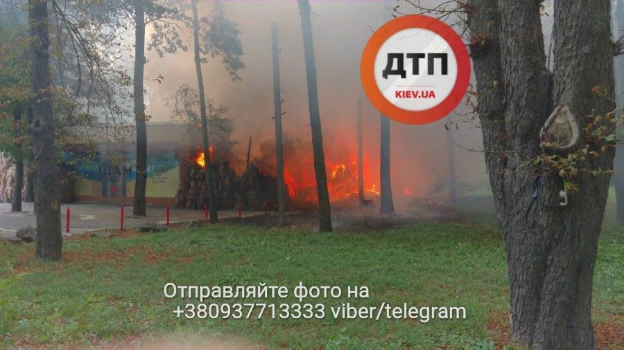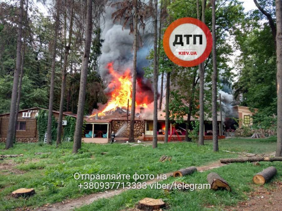 В соцсетях пользователи пишут, что горит не только здание ресторана, но и деревья около него и публикуют фото мощного столба дыма.