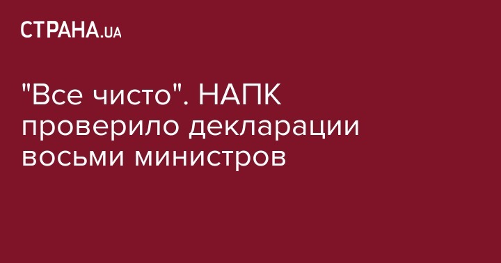 Национальное агентство по предупреждению коррупции (НАПК) провело полную проверку деклараций восьми министров. Об этом сообщает УНН.