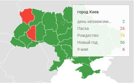 Схожие пропорции по запросам в отдельных областях. Для восточных, южных регионов и Киевской области мы выбрали русский язык запросов, для запада страны - украинский.