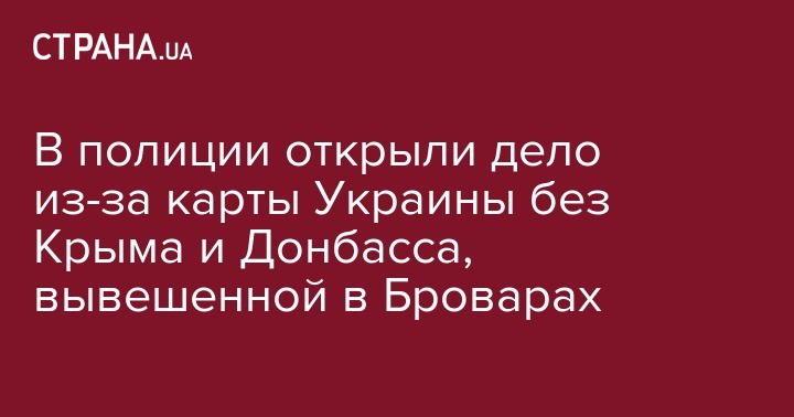 В полиции Киевской области открыли уголовное дело по факту размещения перед городской администрацией в Броварах баннера с картой Украины без аннексированного Крыма и неподконтрольной части Донбасса.