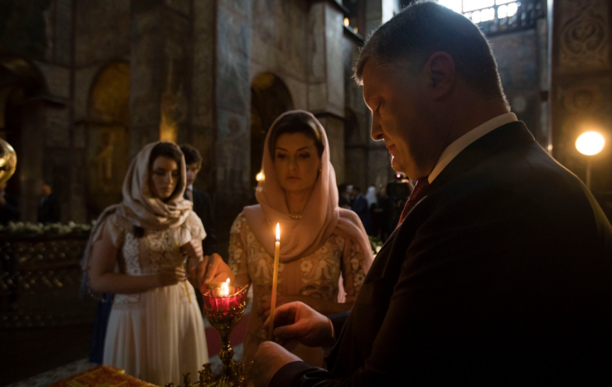 Утром 24 августа Петр Порошенко со своей супругой Мариной и детьми помолился за Украину в Софийском соборе. Об этом сообщается на его официальной странице в Facebook.