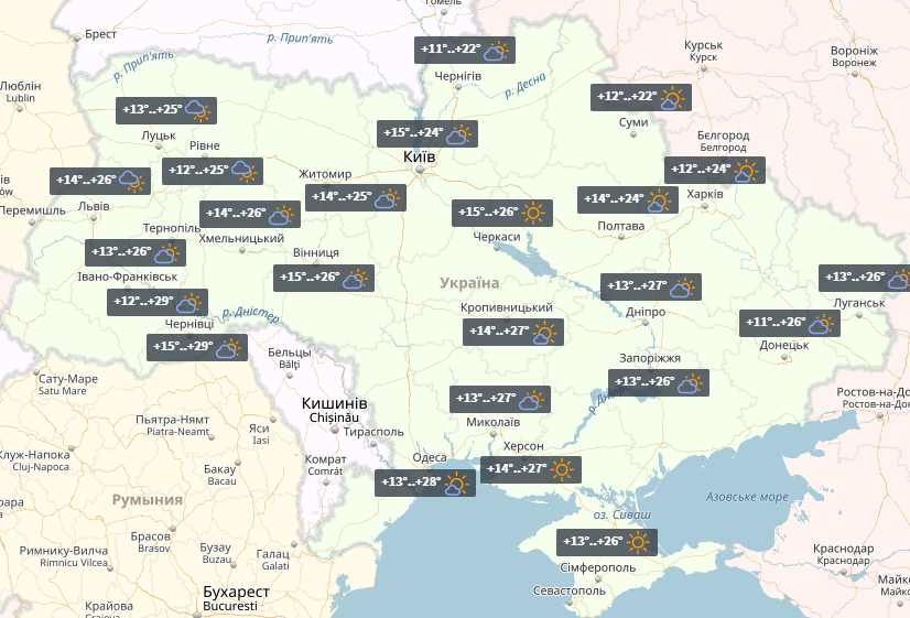 В Украину вернется летнее тепло по всем областям. Карта
