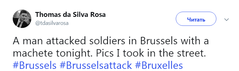 "Человек с мачете атаковал солдат на патрулировании в центре Брюсселя, теперь застрелен".