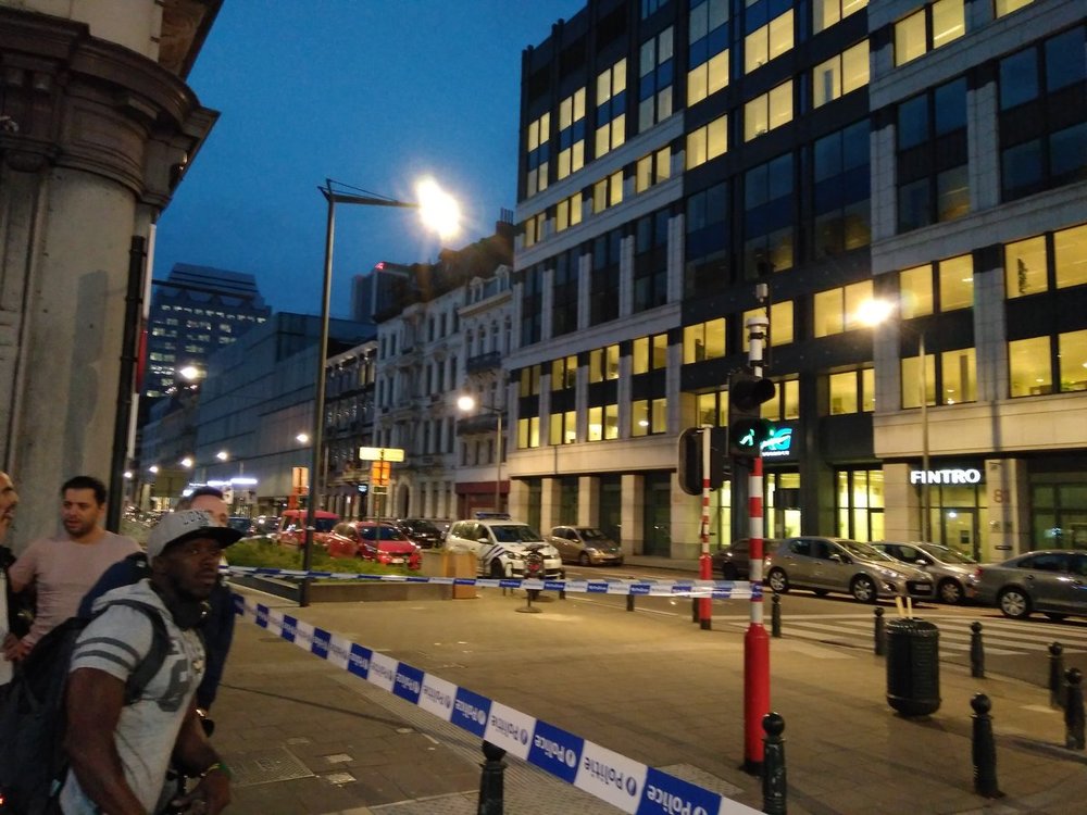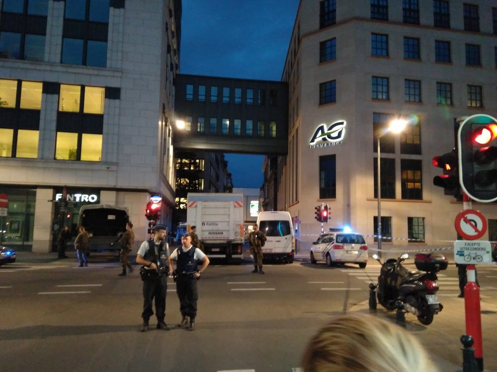 Belgian Police covering the scene after a machete attack ended by retaliating soldiers firing. #Brusselsattack #Brussels #Bruxelles pic.twitter.com/fZRZ6MfTcI