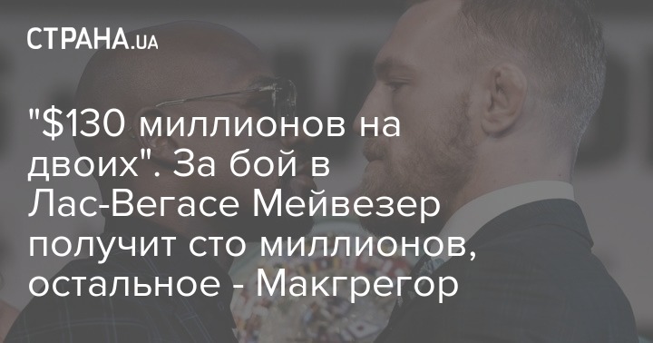 При этом американец Флойд Мейвезер получит за бой $100 миллионов, а ирландец Макгрегор остальные $30 миллионов.