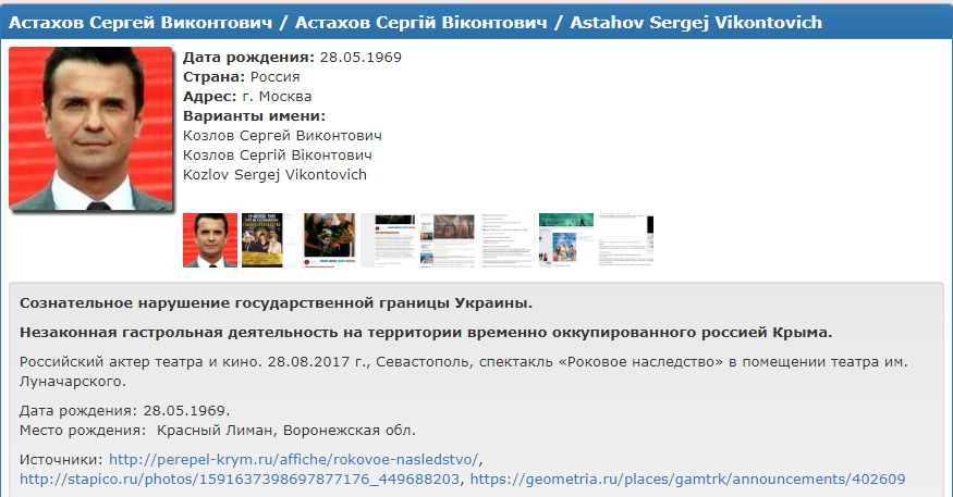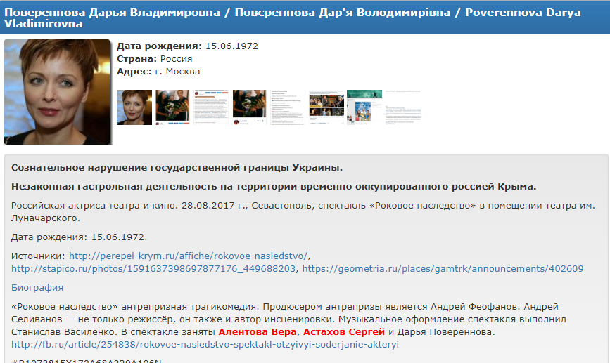 Черный список скандального "Миротворца" пополнили очередные российские актеры - Сергей Астахов и Дарья Повереннова. Их профайлы появились на сайте.
