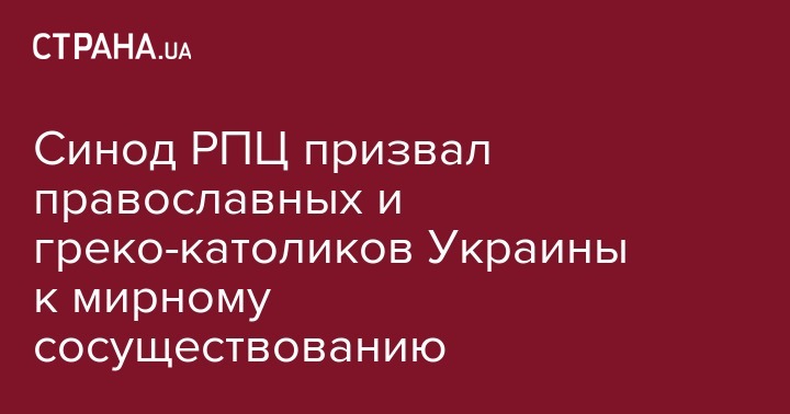 Синод Русской православной церкви призывает каноническую православную и грекокатолическую церкви Украины к мирному сосуществованию. Об этом сообщается в постановлении, принятого по итогам заседания Синода в Санкт-Петербурге.