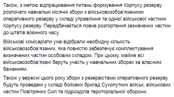 Военными комиссариатами призвано резервистов оперативного резерва "в объемах, обеспечивающих доукомплектование этих бригад до полного штата".