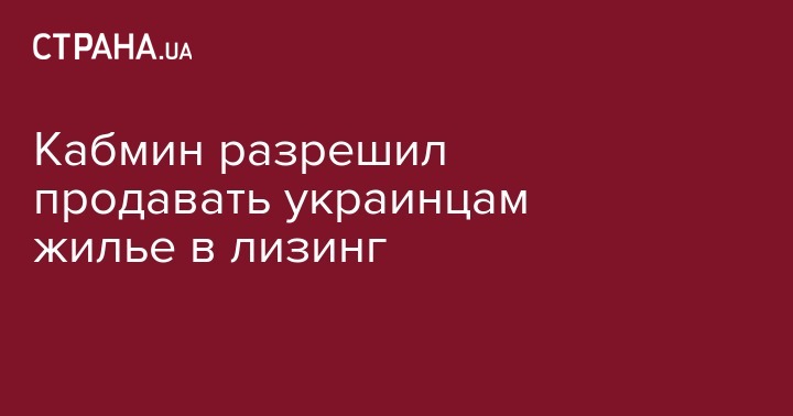 Кабмин разрешил Государственному ипотечному учреждению проводить лизинг для населения - предоставлять жилье в аренду с правом выкупа. Об этом сообщает пресс-центр правительственного портала.