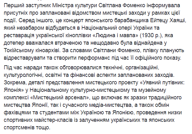 Об этом сообщается на Facebook-странице Министерства культуры Украины.