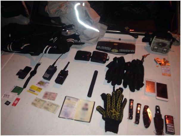 Отмечается, что в салоне авто находились четверо человек и во время осмотра у них нашли помповое ружье, газовый пистолет, 4 ножи, телескопическую палку и рации.