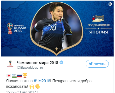 Вся Япония радуется и ликует. Сегодня, 31 августа, национальная сборная Японии обыграла команду Австралии со счетом 2:0 и пробилась в финальную стадию чемпионата мира-2018, который пройдет в России.