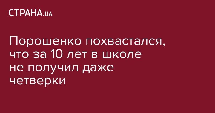 Президент Петр Порошенко похвастался, что в школе все 10 лет учебы был отличником и не получил даже ни одной четверки. Об этом он сказал, открывая очередную школу - в поселке Песочин Харьковской области. Его выступление транслировал "112 Украина".