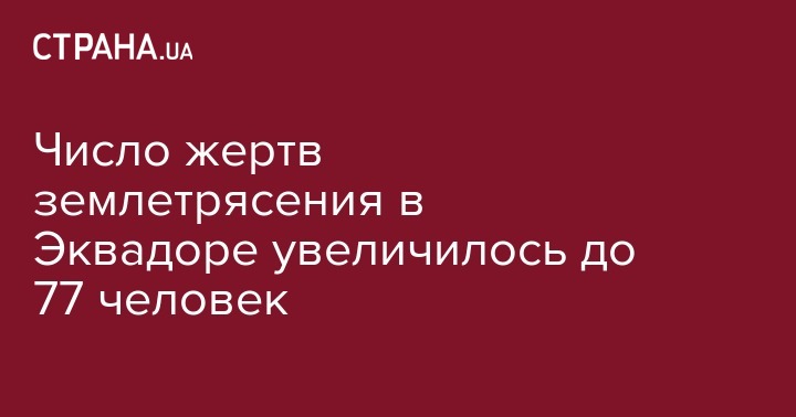 "Число жертв землетрясения в Эквадоре достигло 77 человек, около 588 ранены", - сообщил вице-президент страны Хорхе Гласа.