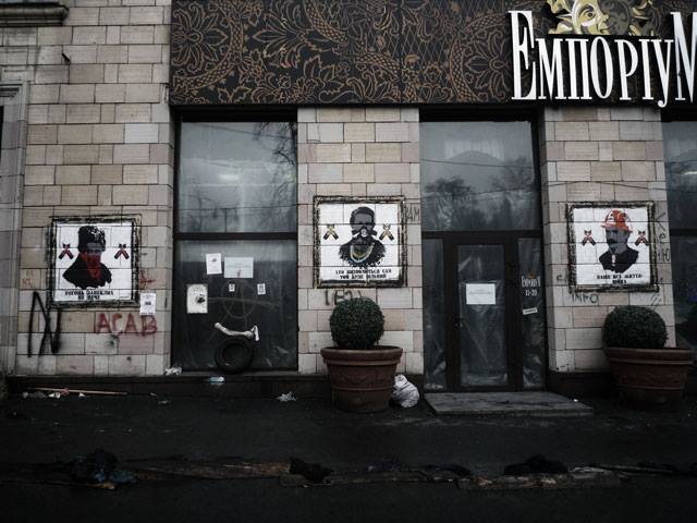 В Киеве с фасада магазина люкс-мебели "Эмпориум" на улице Грушевского, 4 исчезли знаменитые патриотические граффити, которые были нанесены во время Революции достоинства. Об этом сообщает журналист Татьяна Высоцкая на своей странице в Facebook.