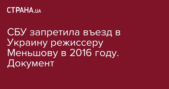 Служба безопасности Украины в марте 2016 года запретила въезд в страну российскому режиссеру и актеру Владимиру Меньшову, который, по данным украинских источников, оказывал материальную поддержку самопровозглашенной "ДНР" и делал высказывания, которые в Киеве расценивают как антиукраинские.