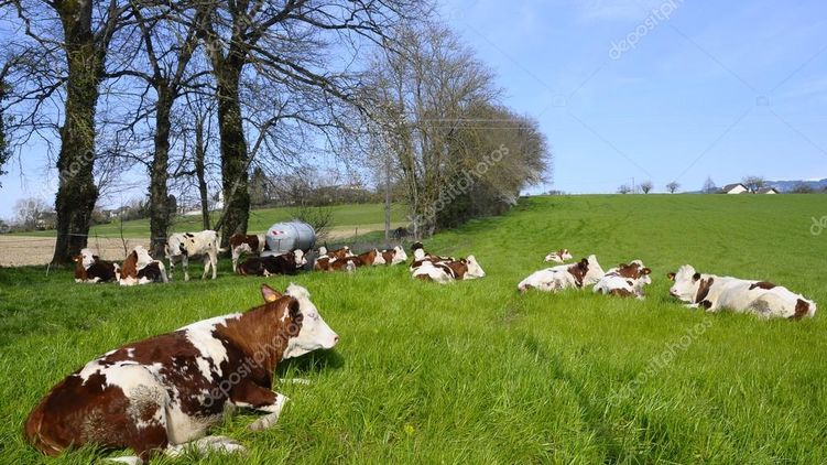 Коровы на зеленом поле, Савойя, Франция Фото: Depositphotos