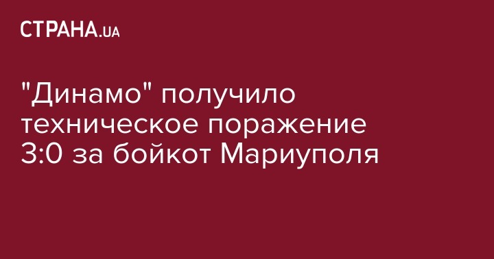 "Динамо" получило техническое поражение 3:0 за бойкот Мариуполя