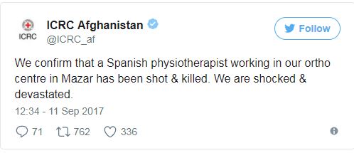 "Мы можем подтвердить, что испанский физиотерапевт, которая работала в ортопедическом центре в Мазари, застрелена. Мы потрясены и опустошены", - говорится в сообщении.